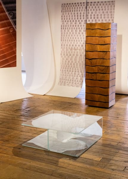 Themes central to the studio’s work include: accentuating a material’s natural expression, wielding materiality to provoke the senses, and investigating how we experience objects and space. There is a focus on designing thoughtful products for the living environment that combine function with sensuality. Increasingly important to them are objects that are visually simple, but functionally diverse. An example of this is the Glimpse Mirrored Screen which functions seamlessly as a room divider, a mirror and a shelf. This flexibility aims to produce objects that are beautiful like a sculpture, rather than visually complicated like a Swiss army knife, giving rise to the possibility of needing fewer objects. By playing with seating levels and direction, merging typical zones and characterising a space by atmosphere rather than singular function, their recent work promotes flexible spaces to adapt to changing life rhythms.