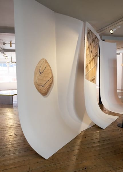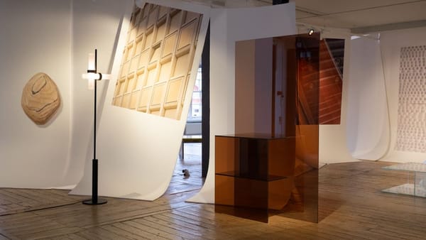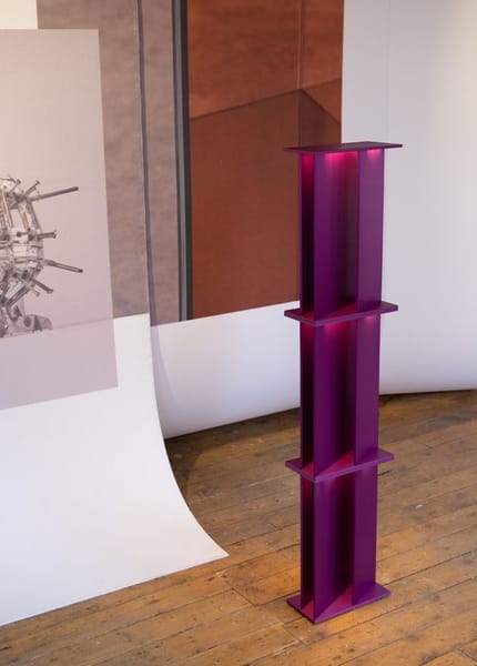 Rotterdam-based Studio Truly Truly (Kate and Joel Booy), design products, lighting, furniture and textiles. For ‘Non-Linear’ the studio reflects on their creative practice and inspirations, identifying an indirect design process. Here, they present a selection of objects addressing the topic of the future living environment, developed for their recent ‘Das Haus’ presentation for the Cologne International Furniture Fair, as well as a new table spawned from recent experimentations with paint and glass. Also on show is one of the studio’s key industrially produced objects for the lighting company Rakumba. In contrast to this, are a number of objects stemming from a process-driven approach which are hand-crafted by the studio. The objects are presented among a dynamic tumble of panels concieved as a representation of the fluid thoughtpaths and associations of the studio’s creative process. Inspirations and their respective objects are mixed throughout the space, reflecting the way Truly Truly’s ideas cross-pollinate from one project to another and offering a deeper insight into their thinking.