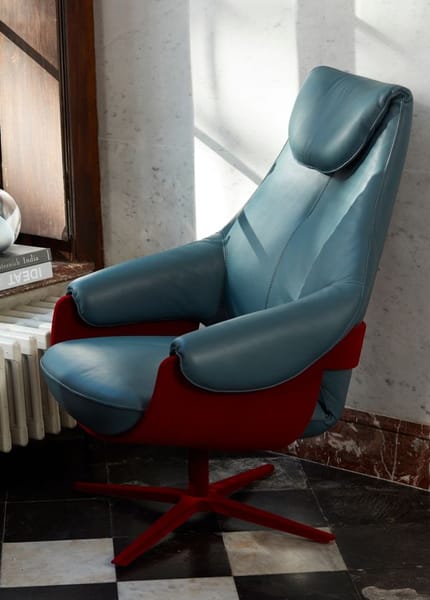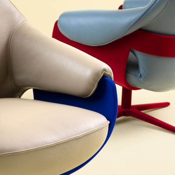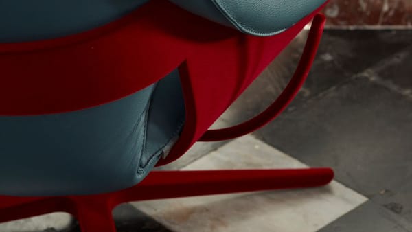 Produced exclusively in two colour expressions. In each, the vibrancy and depth of the saturated velvety sheen is heightened next to a muted coloured leather