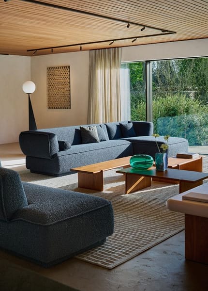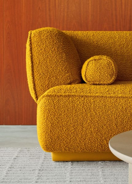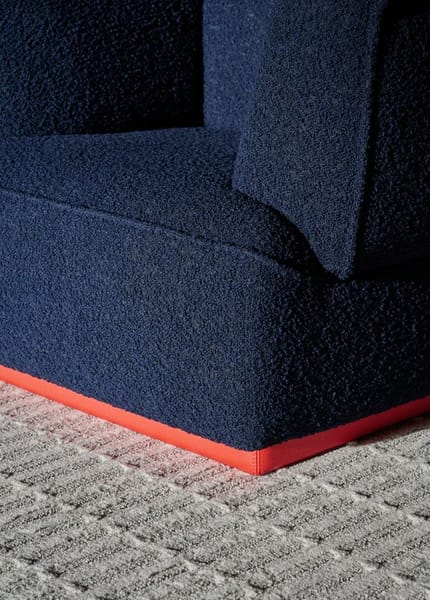Inspired by architecture, Truly Truly played with straight, blocky forms to compose a sofa with stepped, overhanging layers. The forms were then plumped-up as if slightly ‘inflating’ them with softness. The result is generous, encompassing proportions and enticing, unapologetic comfort.