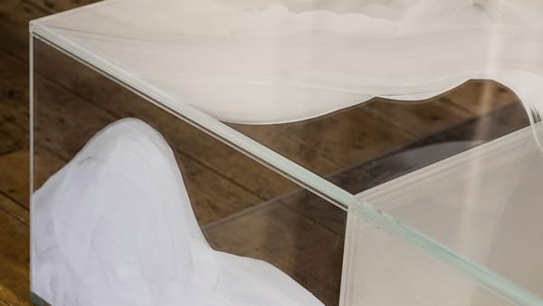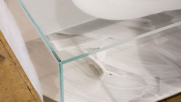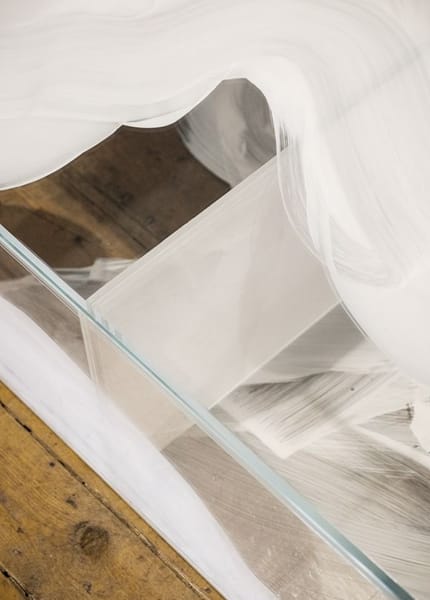 The Madrid table is characterised by the qualities of watery paint, captured on transparent glass. Multiple intersecting planes of glass deal with visually overlaying painting in space. Areas of painted and unpainted glass reveal glimpses of the layers behind.