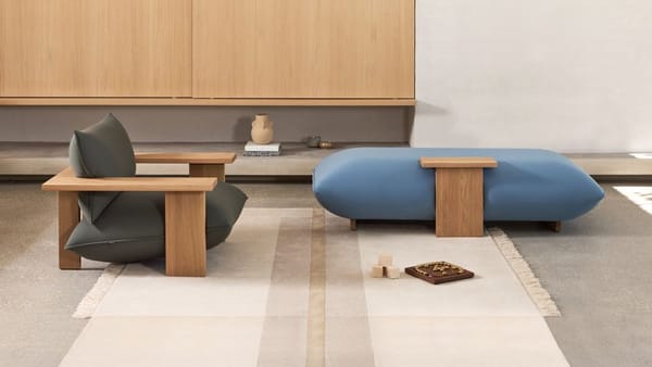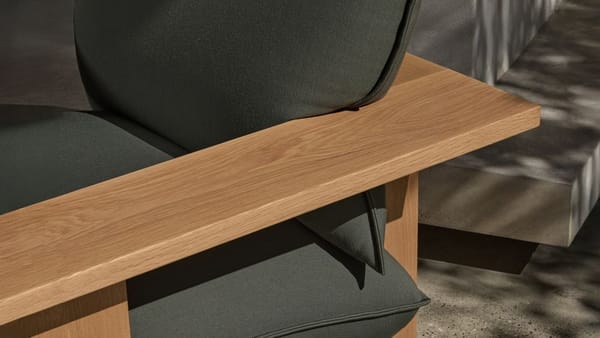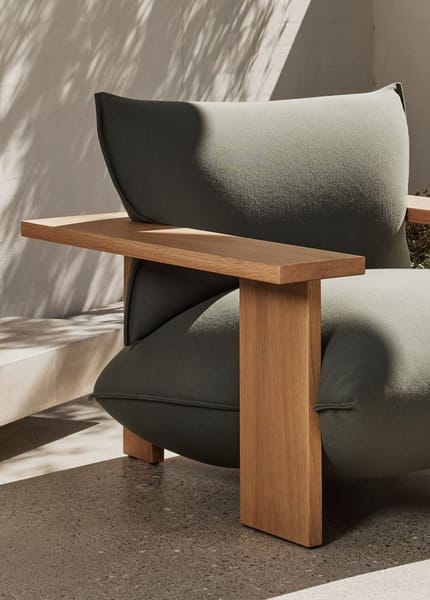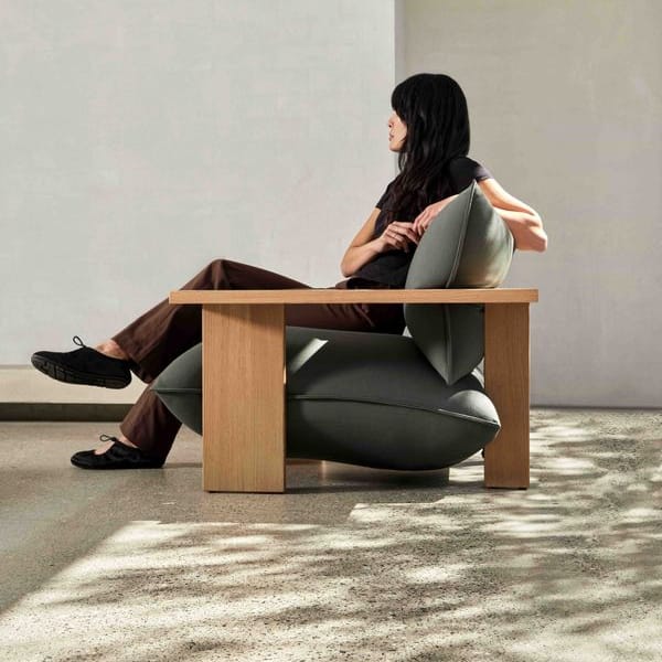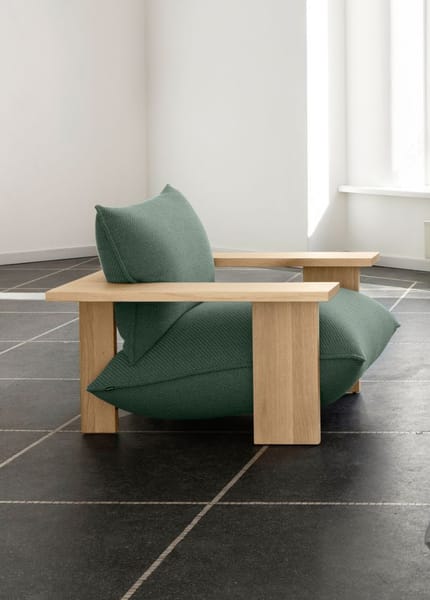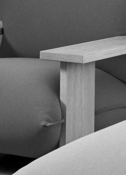 For a long time Studio Truly Truly has been interested in sculpting upholstery with a simple gesture of pressure. The armchair explores this idea through a bold wooden frame shaping voluminous cushions into natural, flowing curves. The softness of the upholstery is exaggerated by the brutality and rigidity of the timber, which lends a functional and aesthetic visual play.