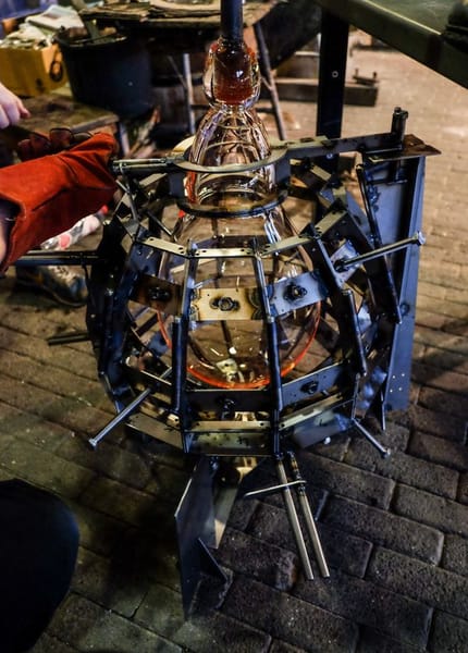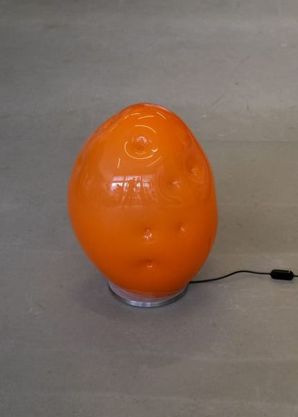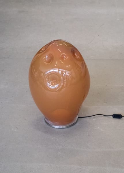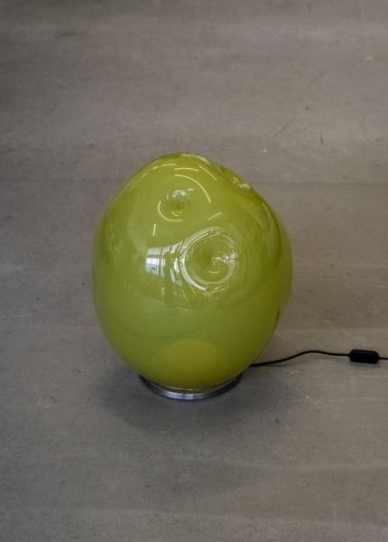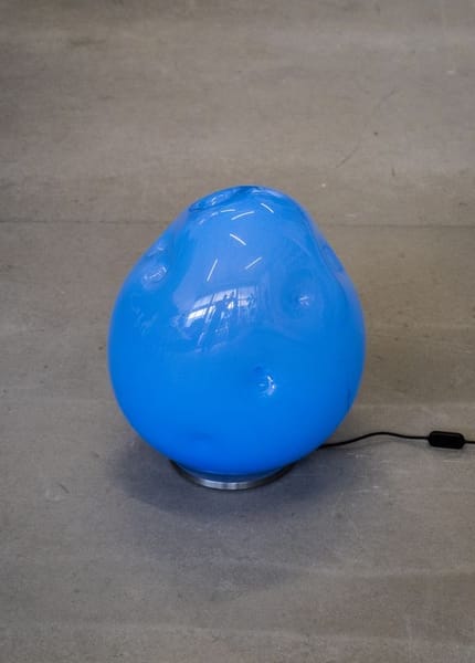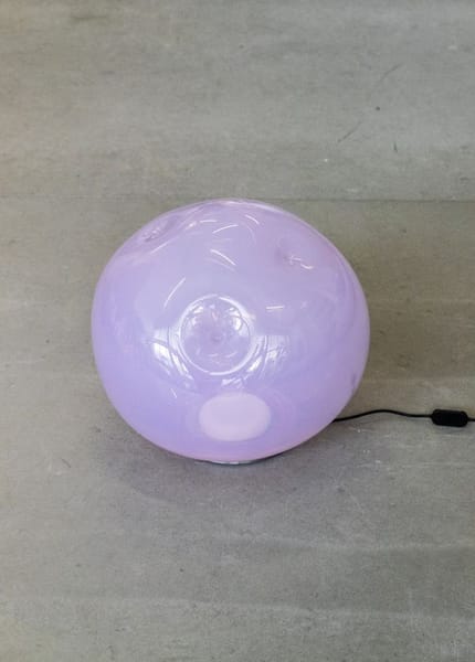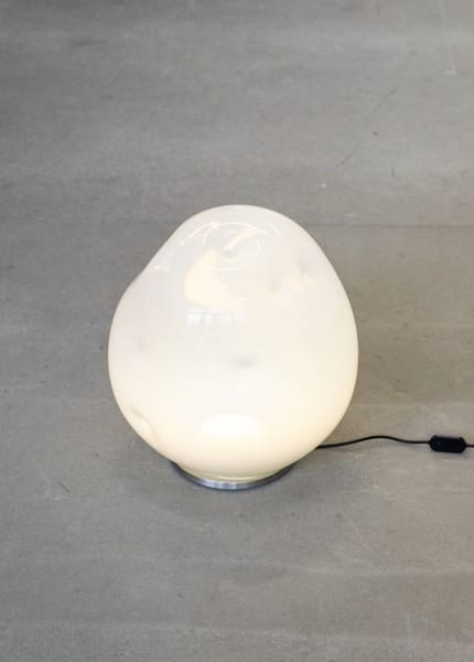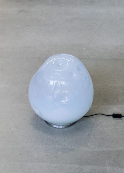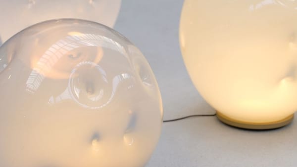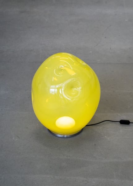 Truly Truly worked with the Netherlands National Glass Museum to experiment with a novel method of blowing glass. They built a spherical outer-mould holding adjustable pins, positioned in a grid around the sphere. The dynamic mould becomes a suggestive architecture; it allows the designers to influence the glass with a gentle touch. The designer and the glass engage in a co-creation in which forces of nature collide with human intervention. The resulting unreal and morphed shapes give full expression to the inherent properties of blown glass: tension, expansion, elasticity, gravity and fluidity. The process of the dynamic mould results in each Touched table light being subtly unique.